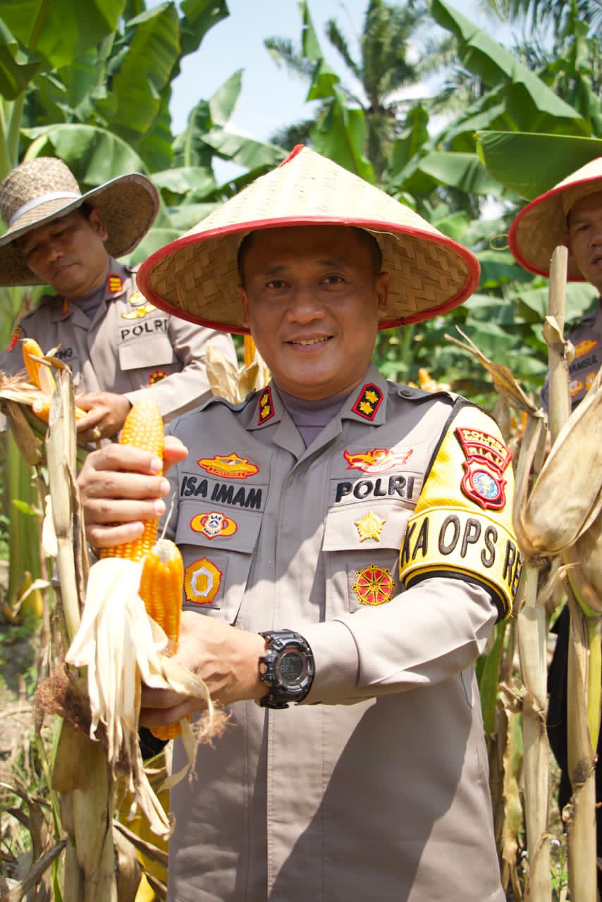 Dukung ketahanan pangan Nasional , Kapolres Rohil Pimpin Panen Raya Jagung,