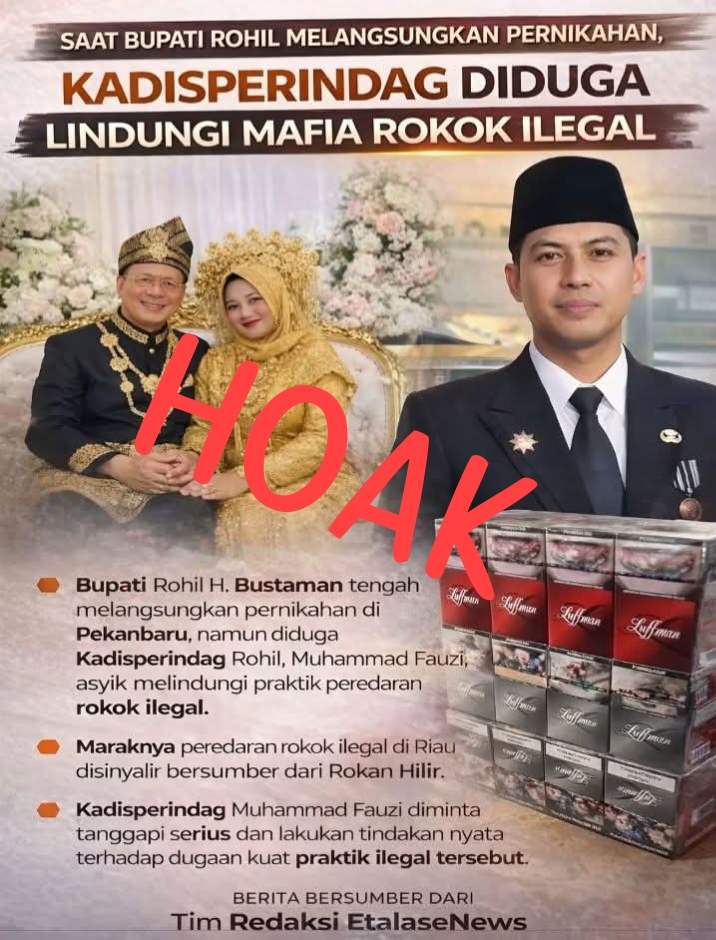 Didalam foto tersebut tertulis “saat bupati rohil melangsungkan pernikahan, ka disperindag diduga lindungi mafia rokok ilegal”.